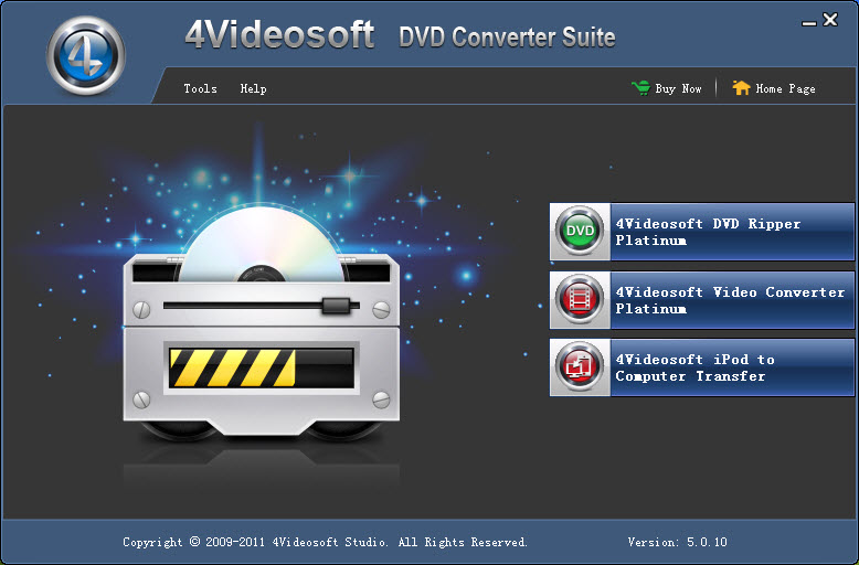 4Videosoft DVD Converter Suite offers the solution of DVD Converter and video file converter. It is the combination of DVD Ripper Platinum and Video Converter Platinum software. Therefore, with this multifunctional DVD Converter Suite, you can convert DVD to MP4, convert DVD movie to AVI, MP4, MPEG, WMV, 3GP, HD video, MP3, WMA etc with super fastest DVD conversion speed. Also, it is easy to convert videos between MPG, MPEG, MPEG2, VOB, MP4, AVI, M4V, RM, RMVB, WMV, etc and HD video and extract audio from these videos.